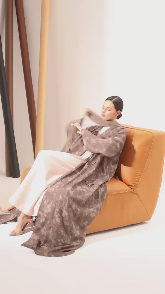 عباية كلوش بتطريز فراشات 3دي من الامام ، قماش النن بطبعات الفراشات